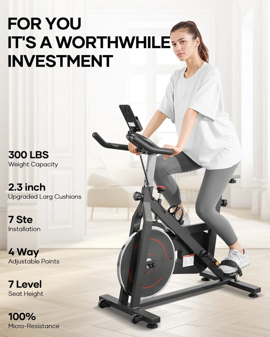 Exercise Bike Indoor Cycling Bike with 300Lbs Big Seat Cushion for Home Cardio Leg Workout